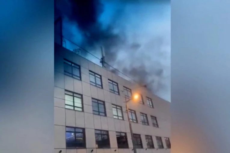 Iznad zgrade Sportskog centra "Tašmajdan" vidi se ogroman gusti crni dim.