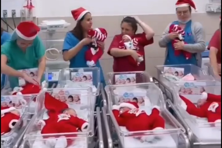 Naime, na snimku koji je podeljen na Instagramu, vidi se nekoliko medicinskih sestara, i mnogo beba u krevecima, obučenih kao mali Deda Mrazići.