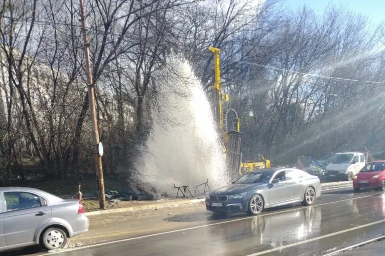 Na Zvezdari, u Bulevaru kralja Aleksandra, kod broja 414, zabeležen je prizor gejzira pored puta.