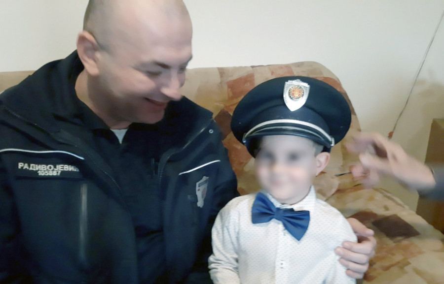 Ministarstvo unutrašnjih poslova je na svom Fejsbuk profilu objavilo fotografije dečaka koji sedi u krilu policajca. U opisu fotografija stoji da je malištan za peti rođendan poželeo da ga poseti policajac.