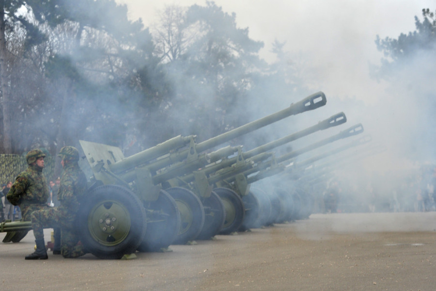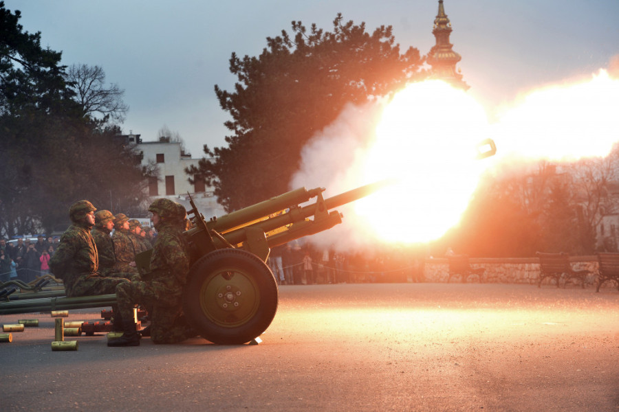 Sa Savske terase Kalemegdanske tvrđave danas posle podne izvršena je počasna artiljerijska paljba, povodom obeležavanja nacionalnog praznika - Dana državnosti Srbije.