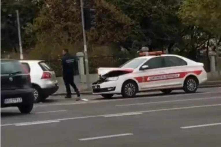 Sudar komunalne milicije i putničkog vozila kod Hrama Svetog Save (FOTO)