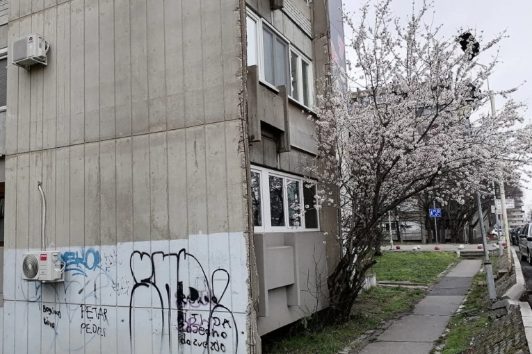 Ono što je posebno interesantno jeste da drvo cveta, maltene, usred betona, odnosno na parčetu zemlje između trotoara i zgrade.