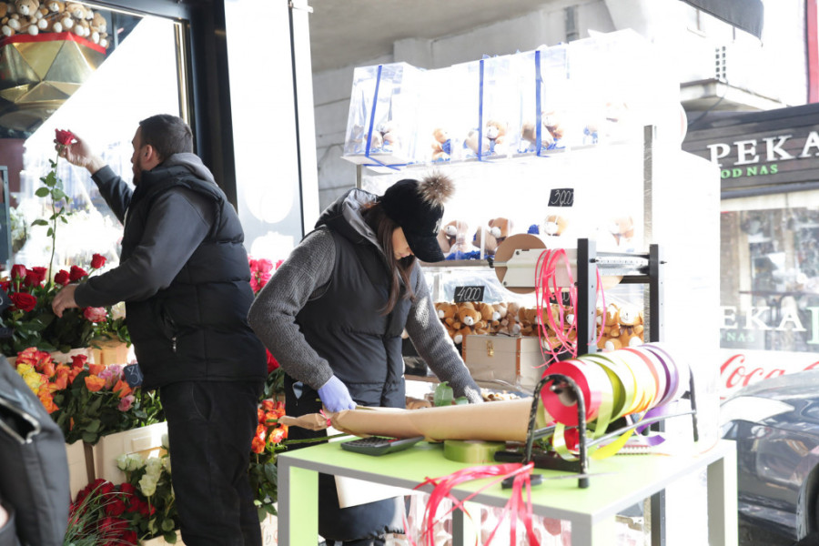 Užurbanu situaciju reporteri 24sedam zatekli su i u jednoj cvećari na Novom Beogradu, gde su ljudi čekali u redu ne bi li kupili po koju ružu ili buket nekog cveća.