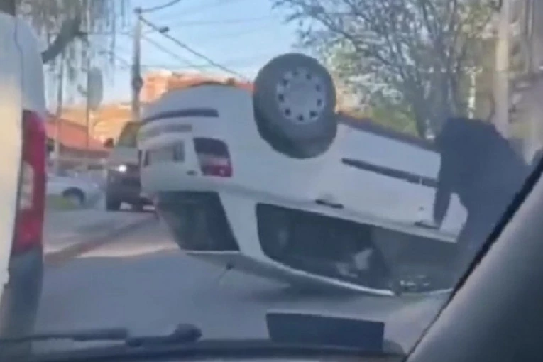 Na Tviteru je objavljen snimak "fijata" koji se skroz prevrnuo.