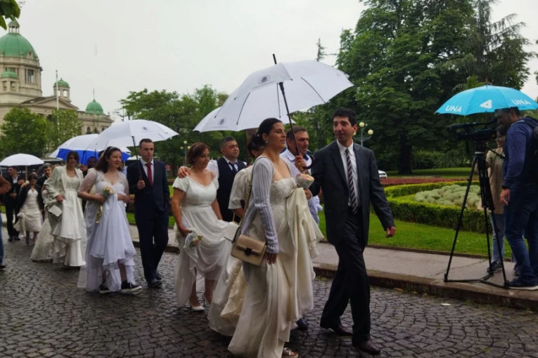 Kiša im nije upropastila najlepši dan u životu: Više od 20 parova zajedno izgovorilo sudbonosno "da" u centru Beograda (FOTO/VIDEO)