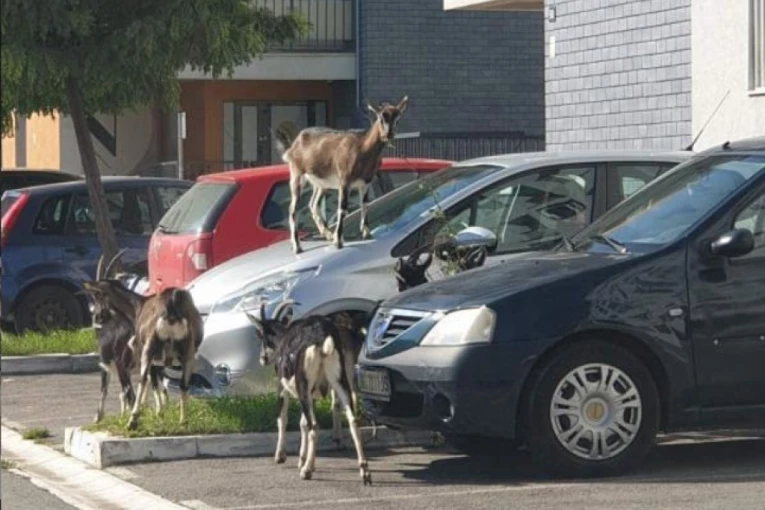 Novobeograđani su ostali u šoku kada su juče ujutro na parkingu ispred stambene zgrade videli nekoliko koza, od kojih se jedna popela na parkiran automobil.