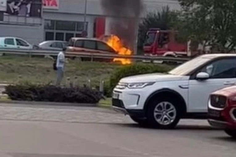 Zapalio se automobil na Zrenjaninskom putu: Plamen zahvatio ceo prednji deo vozila (VIDEO)
