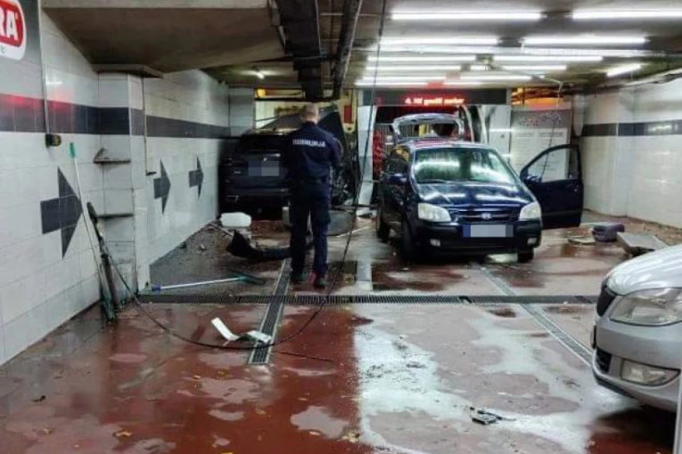 Užas u beogradskoj autoperionici: Uleteo BMW-om i pokosio radnika kom se bore za život! Usput oštetio nekoliko vozila i inventar (VIDEO)