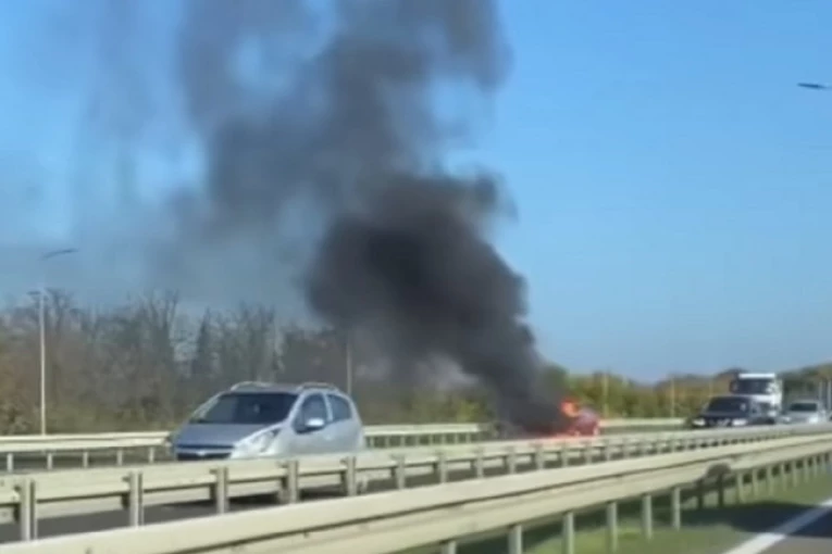 Jedan automobil zapalio se danas na auto-putu, nedaleko od aerodroma "Nikola Tesla".
