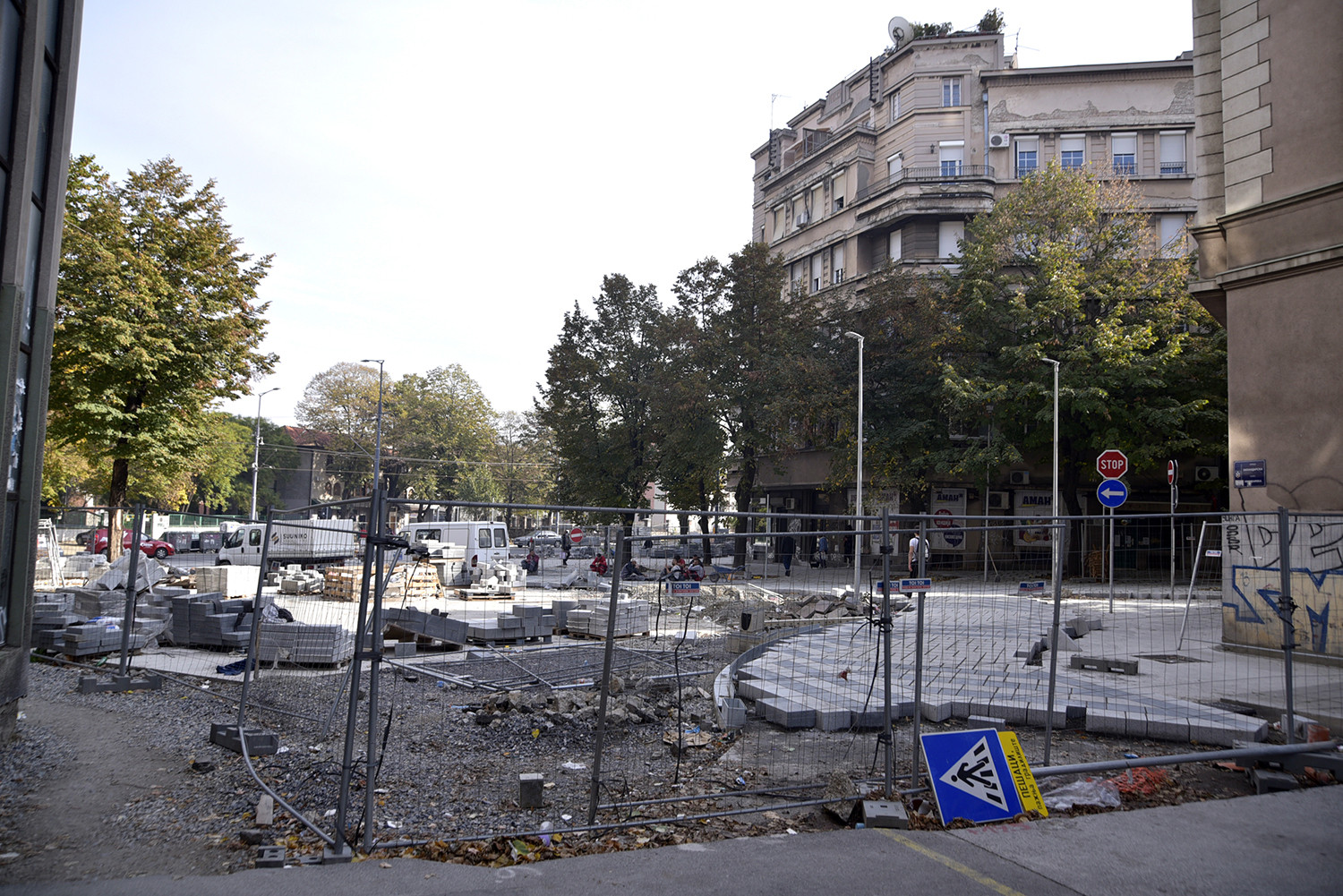 Naime, iza ograđenog dela u kojem će biti postavljen spomenik slovenačkom lingvisti, sada se nalazi gomila kocki, koje tek treba da budu ugrađene, ali i ostaci materijala, cevi i stiropora koji se nalaze oko stabala drveća, tako da ceo potez izgleda neuredno i nedovršeno.