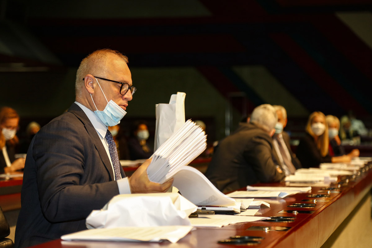 Odbornici, zbog epidemioloških mera u cilju sprečavanja širenja virusa korona, i ovaj put zasedaju u Sava centru i to je treći put da se sednica održava van zgrade na Trgu Nikole Pašića.