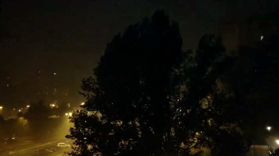 U prestonici u pojedinim delovima nema struje, a munje pucaju i paraju nebo, praćene jakim pljuskom i vetrom.
