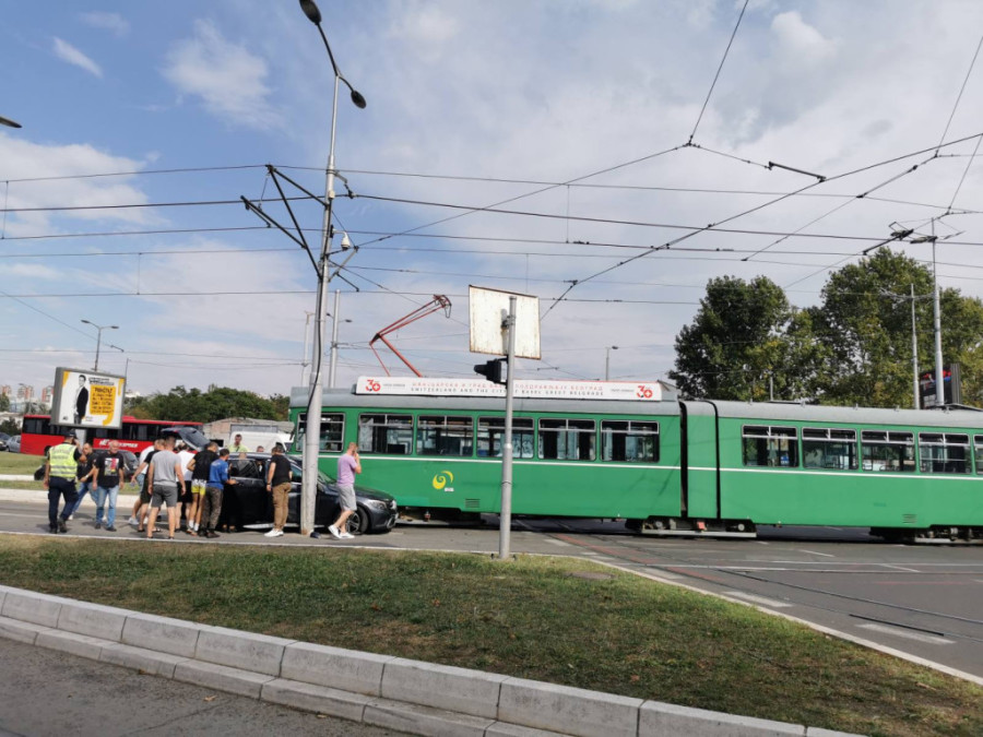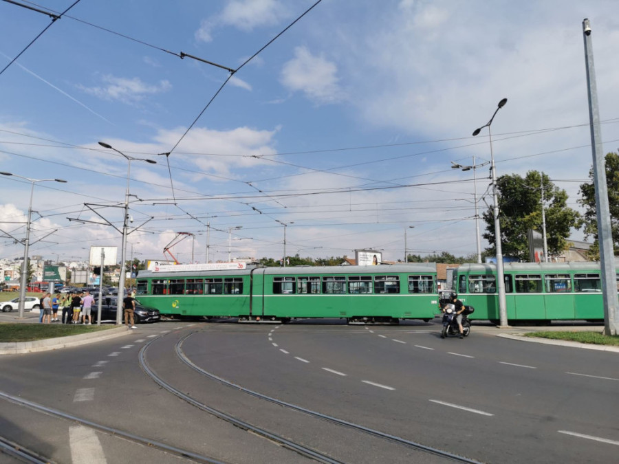 Saobraćajna nezgoda dogodila se danas oko 2.45 časova na Autokomandi, kada su se sudarili automobil marke "mercedes" i tramvaj.