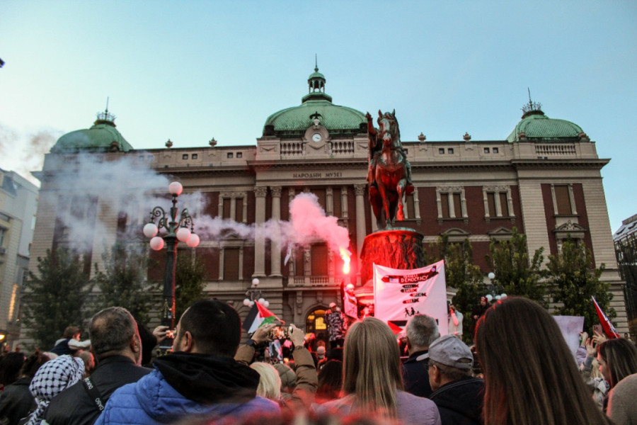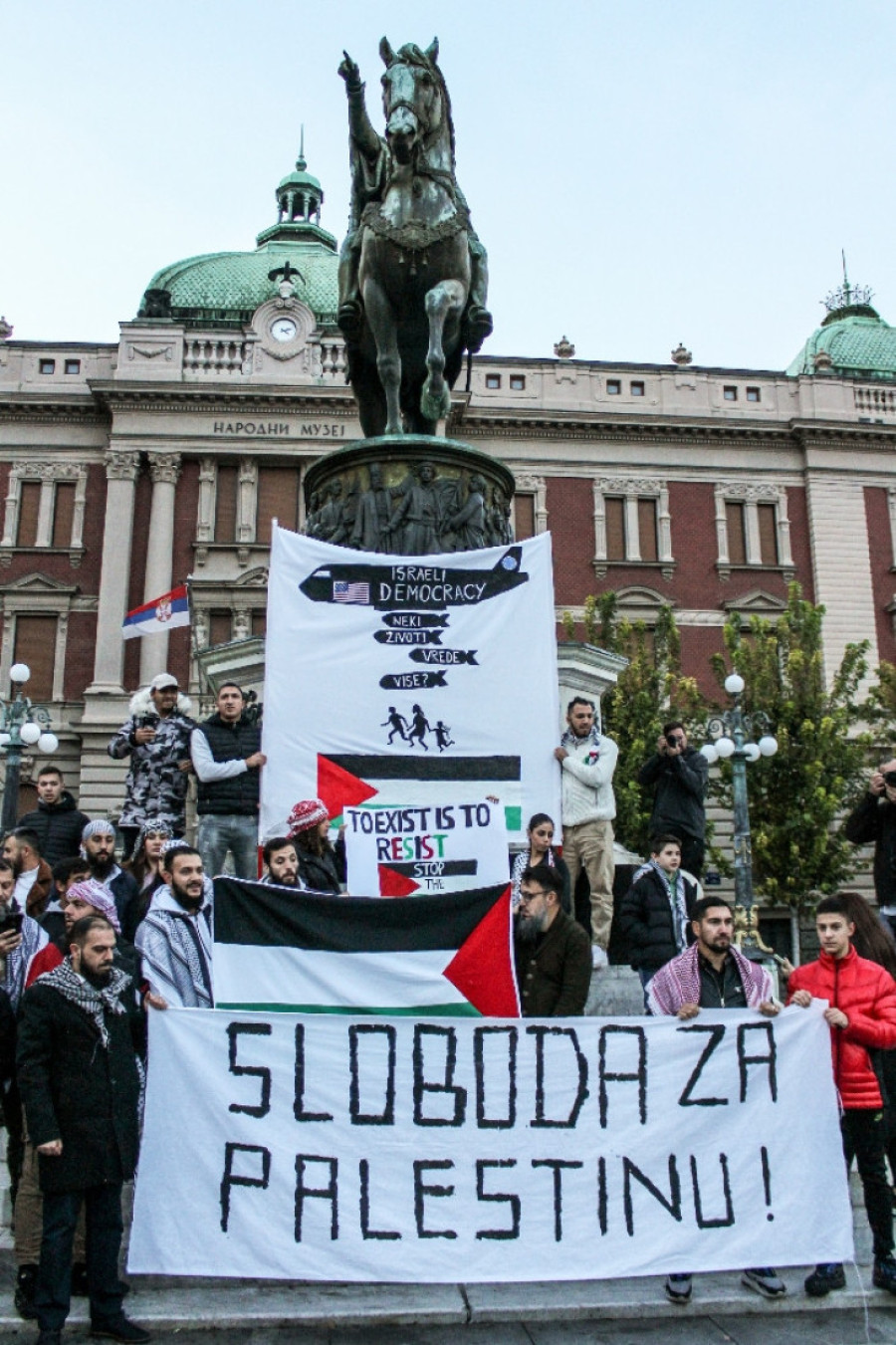 Protest za podršku narodu Palestine održan je danas na Trgu republike u Beogradu, a organizovan je od strane organizacije "Podrška narodu Palestine iz Srbije" zajedno sa palestinskom dijasporom u Srbiji i Društvom srpsko-palestinskog prijateljstva.