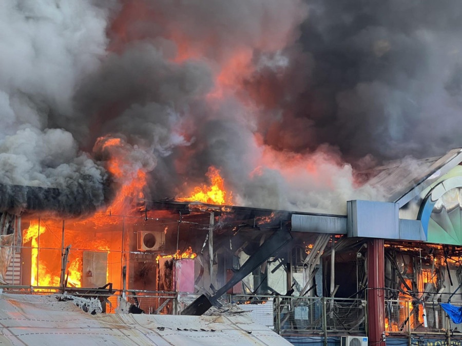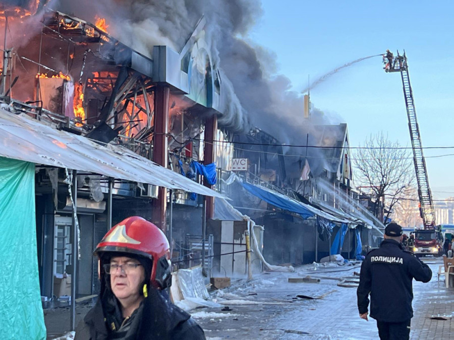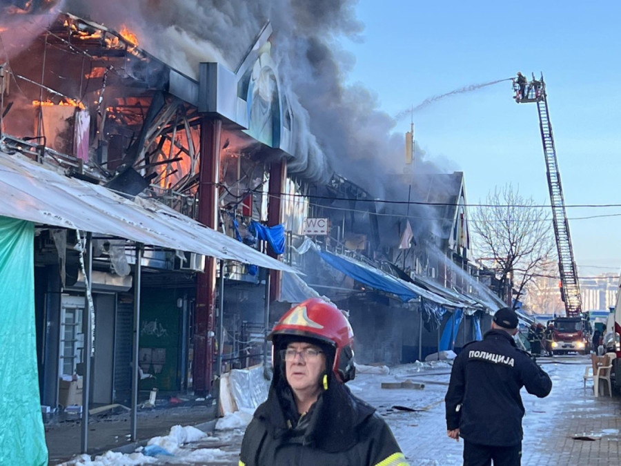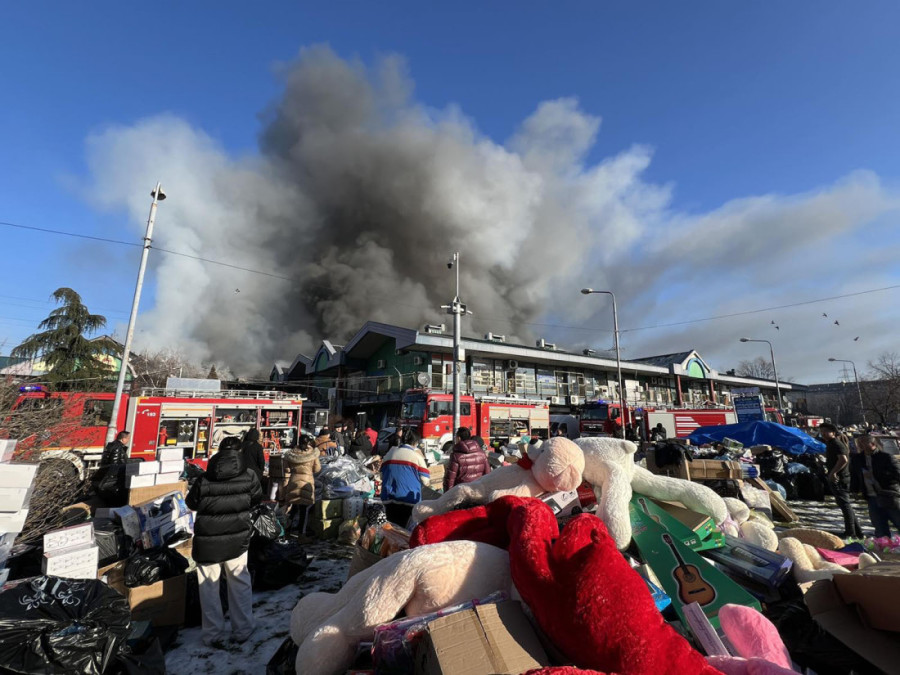 Požar je lokalizovan nakon dva i po sata, a ispred tržnog centra su gomile plišanih igračaka, odeće i razne druge robe koja je izneta.
