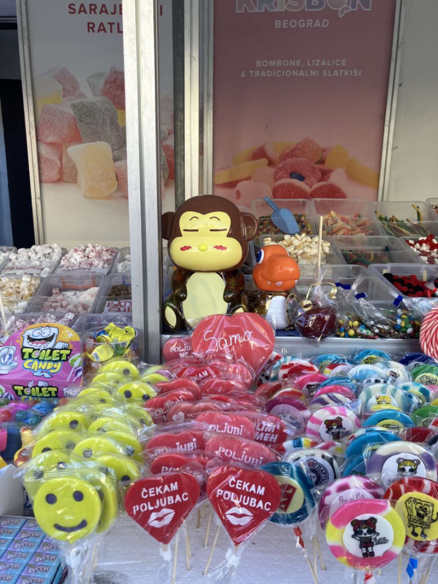 Prodavci su očito uranili da što pre naređaju robu, deca su trčkarala i molila bake da im kupe balon ili gumene bombone, a muzika se čula sa svih strana.