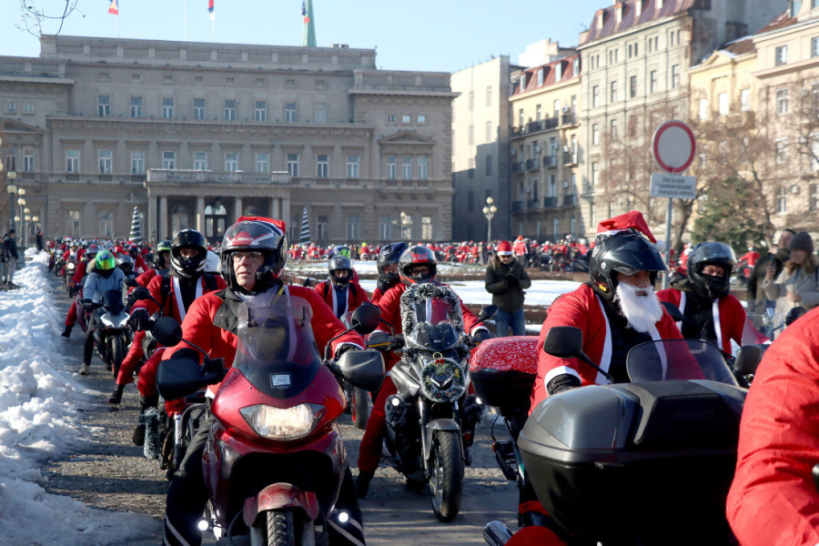 U okviru tradicionalne Dedamrazijade koju sportsko udruženja motorista "BJ bikers" organizuje 18. godinu zaredom kolona maskiranih Deda Mrazova krenula je ispred Starog dvora u Beogradu, duž ulice Kneza Miloša pod pratnjom policije ka Sremčici.