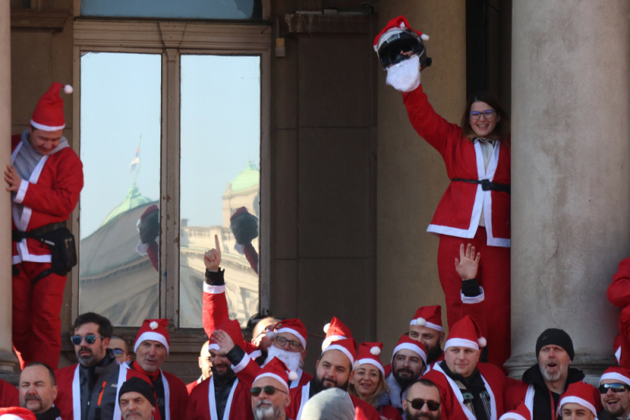 Motoristi obučeni u kostime Deda Mraza danas su vozili motore iz Beograda ka Domu za decu i omladinu ometenu u mentalnom razvoju u Sremčici, gde su štićenicima ove ustanove podelili novogodišnje paketiće.