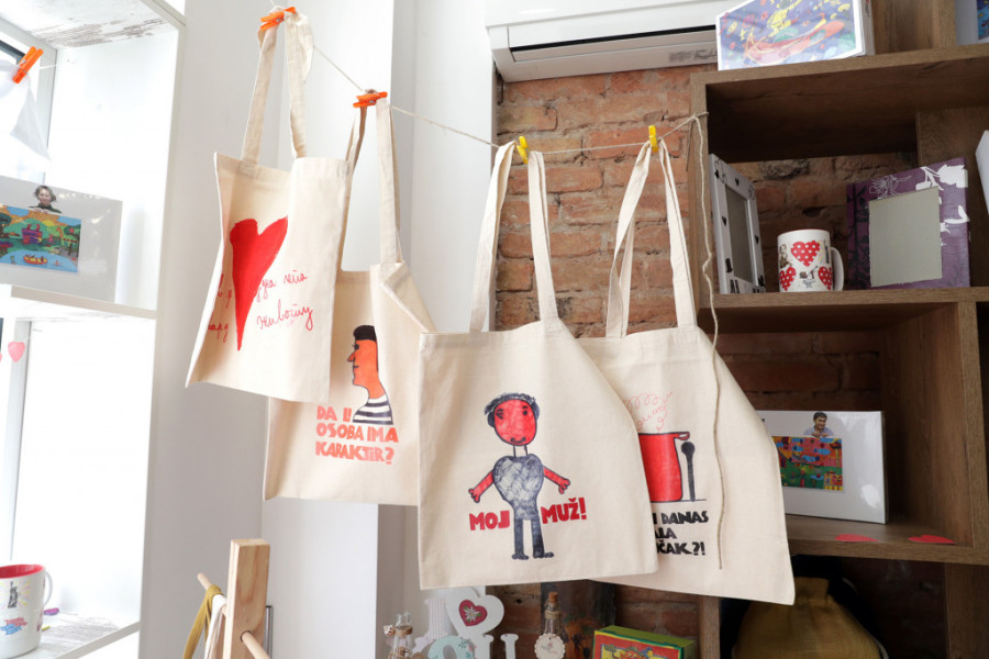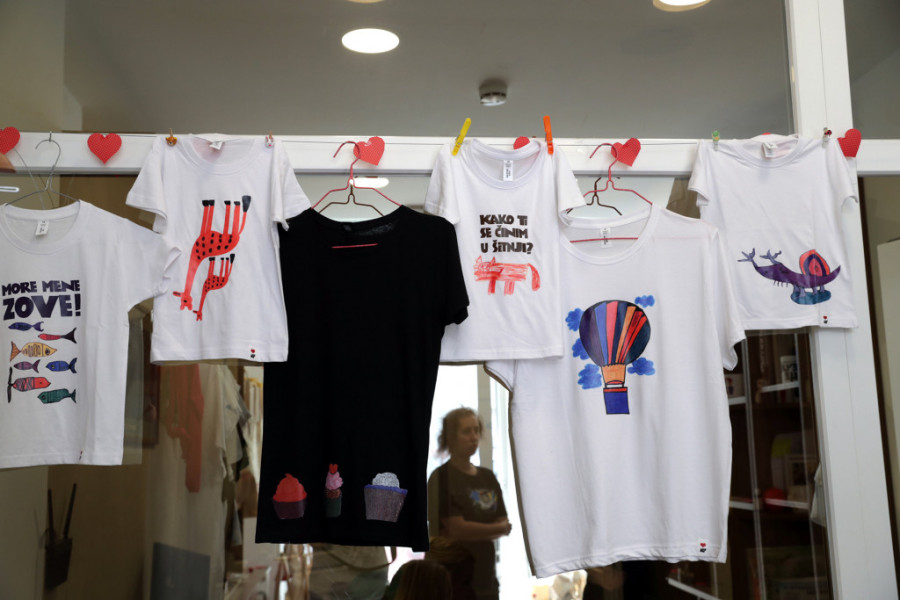 Ona dodaje da uživa u izradi svojih dezena, jer tu može da ispolji svoju kreativnost, a nije se ni bunila kada smo je omeli u radu i pitali da li može da nam pokaže njene autorske dizajnove u prodavnici. Odmah je ispustila štamparsku presu iz ruku i uputila se ka radnji, gde nam je predstavila kakve su sve majice, šolje i cegere napravili ona i njeni drugari.