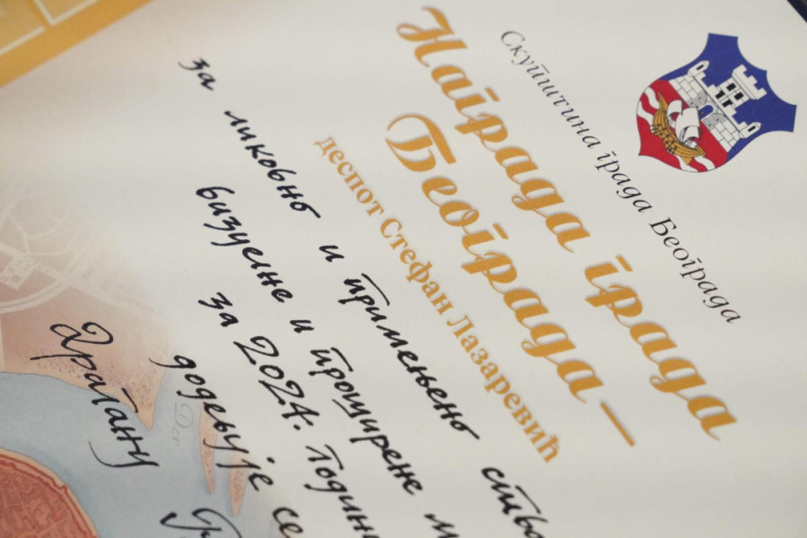 Gradonačelnik Beograda Aleksandar Šapić i predsednik Skupštine grada Nikola Nikodijević uručili su danas Nagrade grada Beograda - despot Stefan Lazarević za 2024. godinu koja se dodeljuje u okviru manifestacije "Dani Beograda", zaslužnim pojedincima koji su svojim radom i delima u prethodnoj godini izuzetno unapredili kulturni, društveni, naučni, privredni i sportski život. Nagrada se dodeljuje u 14 različitih oblasti.