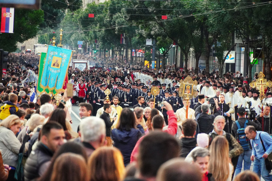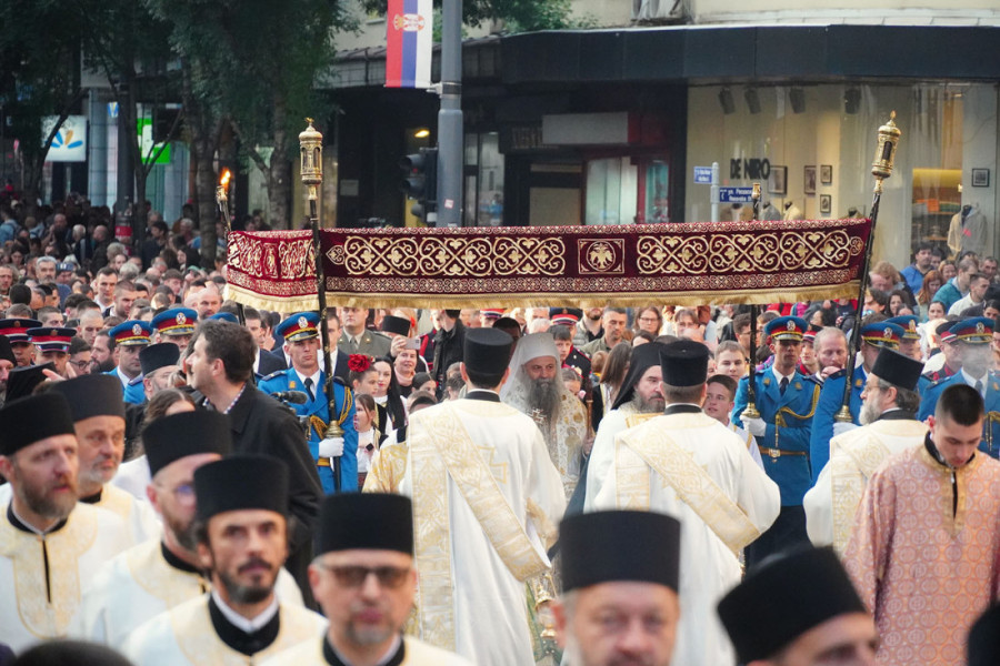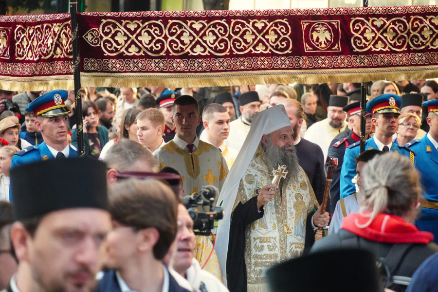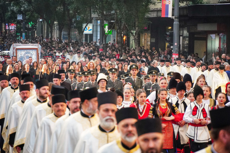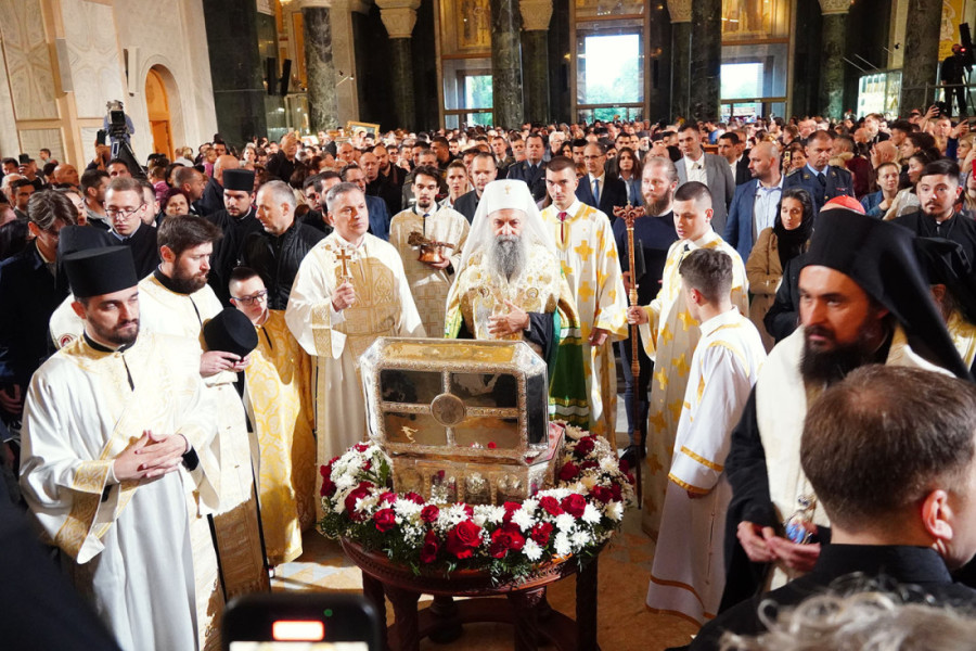 Prethodno je ulicama Beograda prošla Spasovdanska litija koja je krenula od Vaznesenjske crkve ka Hramu Svetog Save, gde je održan moleban.