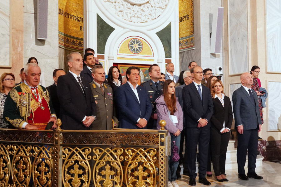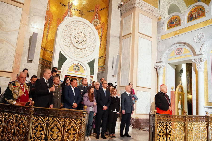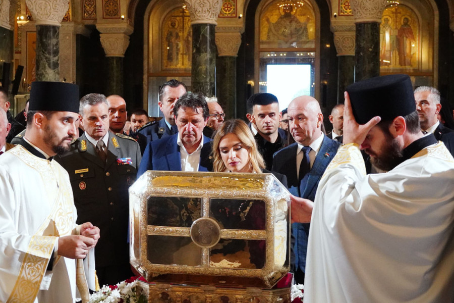 Dodao je da današnje okupljanje svedoči da Srbi nisu narod koji isključivo živi u vremenu, već da je hrišćanski, pravoslavni, srpski narod Svetog Save, koji istoriju prima kao dar Božiji.