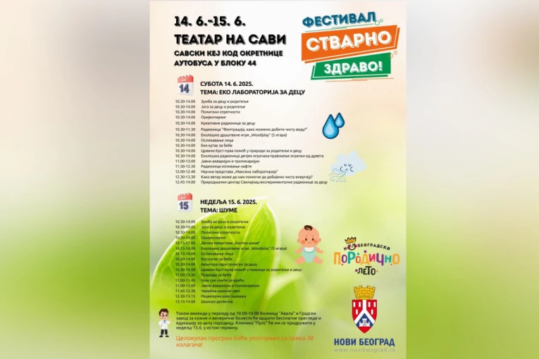 Gradska opština Novi Beograd i Organizacija „Stvarno zdravo“, prirediće na Savskom keju u Bloku 44, na platou Teatar na Savi, 14. i 15. juna, istoimeni festival zdrave hrane i zdravog stila života.