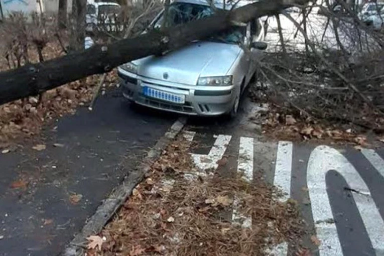 U beogradskom naselju Sremčica jak vetar je iščupao čitavo drvo koje je palo na jedan automobil, i tom prilikom mu smrskalo haubu i šoferšajbnu, dok je na Labudovom brdu “nastradala” trafika.