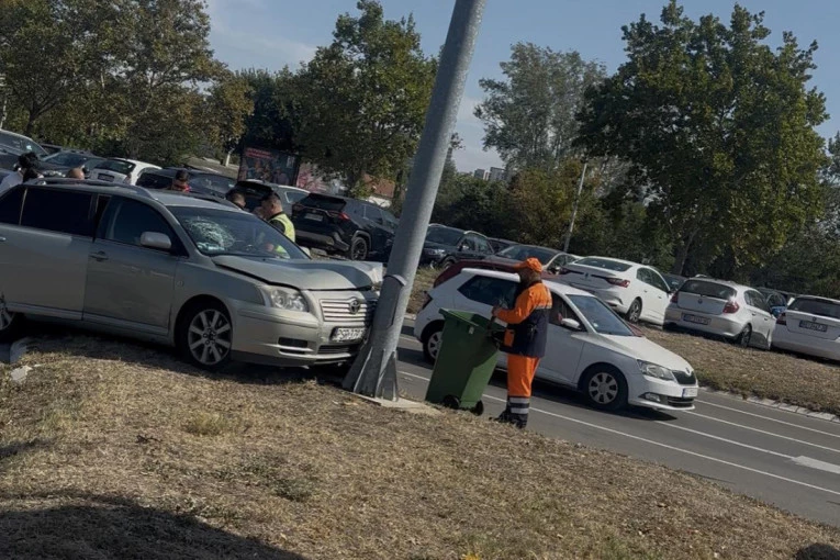 U saobraćajnoj nezgodi koja se dogodila danas u ulici Vladimira Popovića na Novom Beogradu, automobil je skrenuo s kolovoza i zakucao se u banderu.