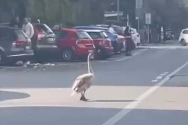 Labudovi na Dorćolu nisu retka pojava, jer su redovni stanovnici Dunavskog keja, ali ovog jutra jedan od njih rešio je da napravi pravu šetnju – i to kolovozom!