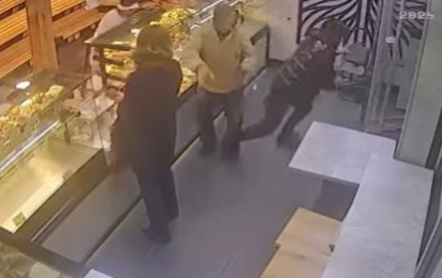 Nakon krađe, lopov beži iz pekare, dok iznenađeni muškarac ostaje šokiran brzinom napada.