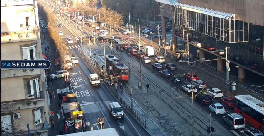 Na Slaviji je primetan povećan broj vozila, ali saobraćaj se odvija nesmetano i kružni tok je prohodan. Slično je i u Nemanjinoj ulici, gde se vozači kreću uz povremena usporavanja, ali bez pravih gužvi.