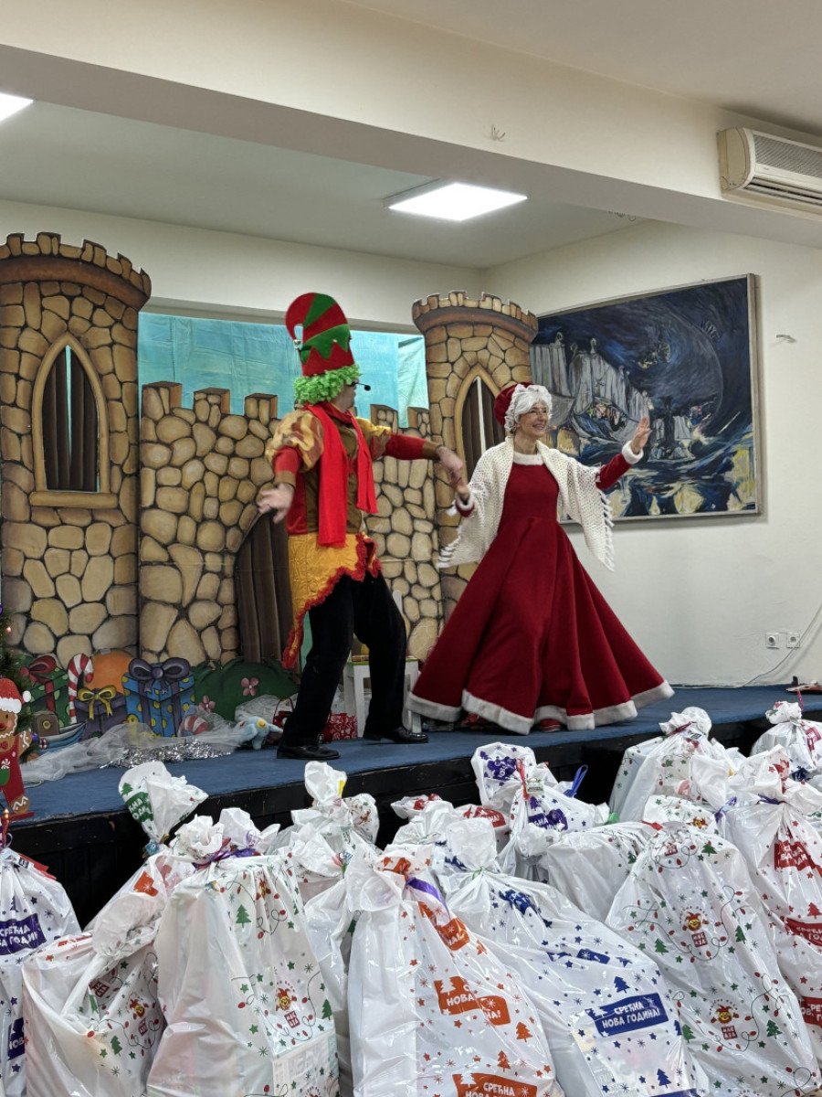 Mališani zaposlenih uživali su u novogodišnjoj predstavi „Novogodišnja čarolija“, u izvođenju trupe Dečije pozorište Hajde, obraduj dan, a potom su dobili i svoje omiljene novogodišnje paketiće.