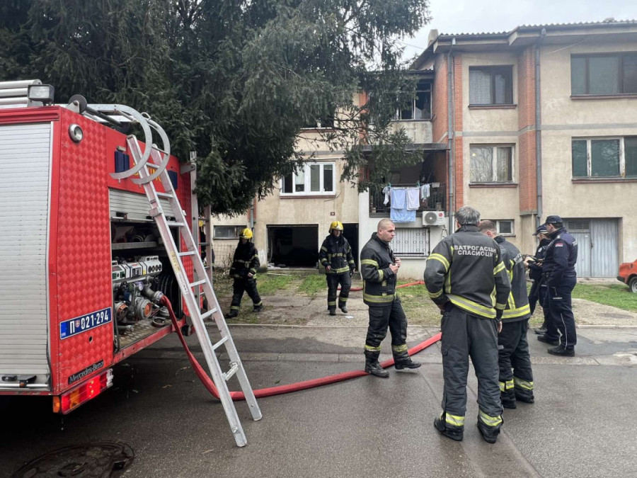 Vatra je izbila u stanu na drugom spratu, a na terenu su tri vatrogasna vozila koja rade na lokalizaciji požara.