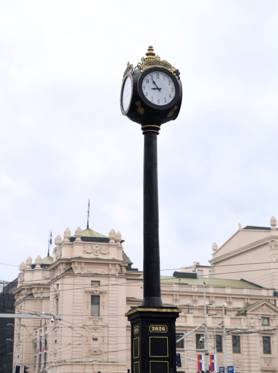 U noći između subote i nedelje postavljen je "Beogradski sat" u centru novoformiranog kružnog toka na Trgu republike, na postamentu od najkvalitetnijeg granita, izjavio je glavni urbanista Marko Stojčić.