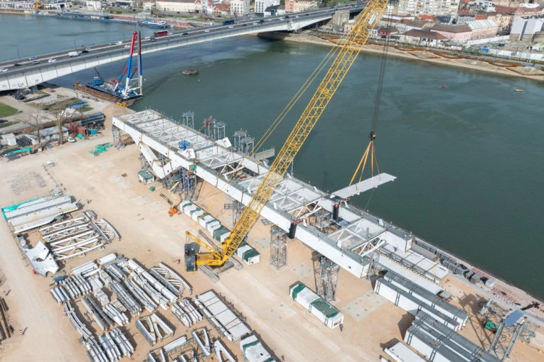 Nikolić je rekao da na novobeogradskoj strani obale građani mogu da vide gradilište koje je pripremljeno za skladištenje elemenata gornjeg stroja mosta, kao i deo konstrukcije budućeg glavnog raspona mosta – lukova.