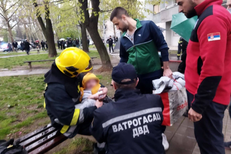 Beba, stara nekoliko meseci, evakuisana je danas oko 18.30 iz zgrade u ulici Mihajla Pupina 201 na Novom Beogradu