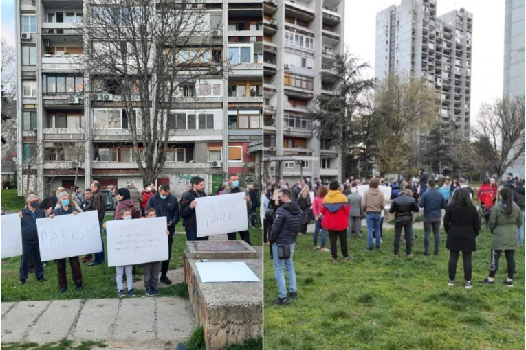 Naime, porodice sa decom izašle su ispred svojih zgrada sa transparentima “Hoćemo park”, “Park za decu”, “Park, a ne parking”.