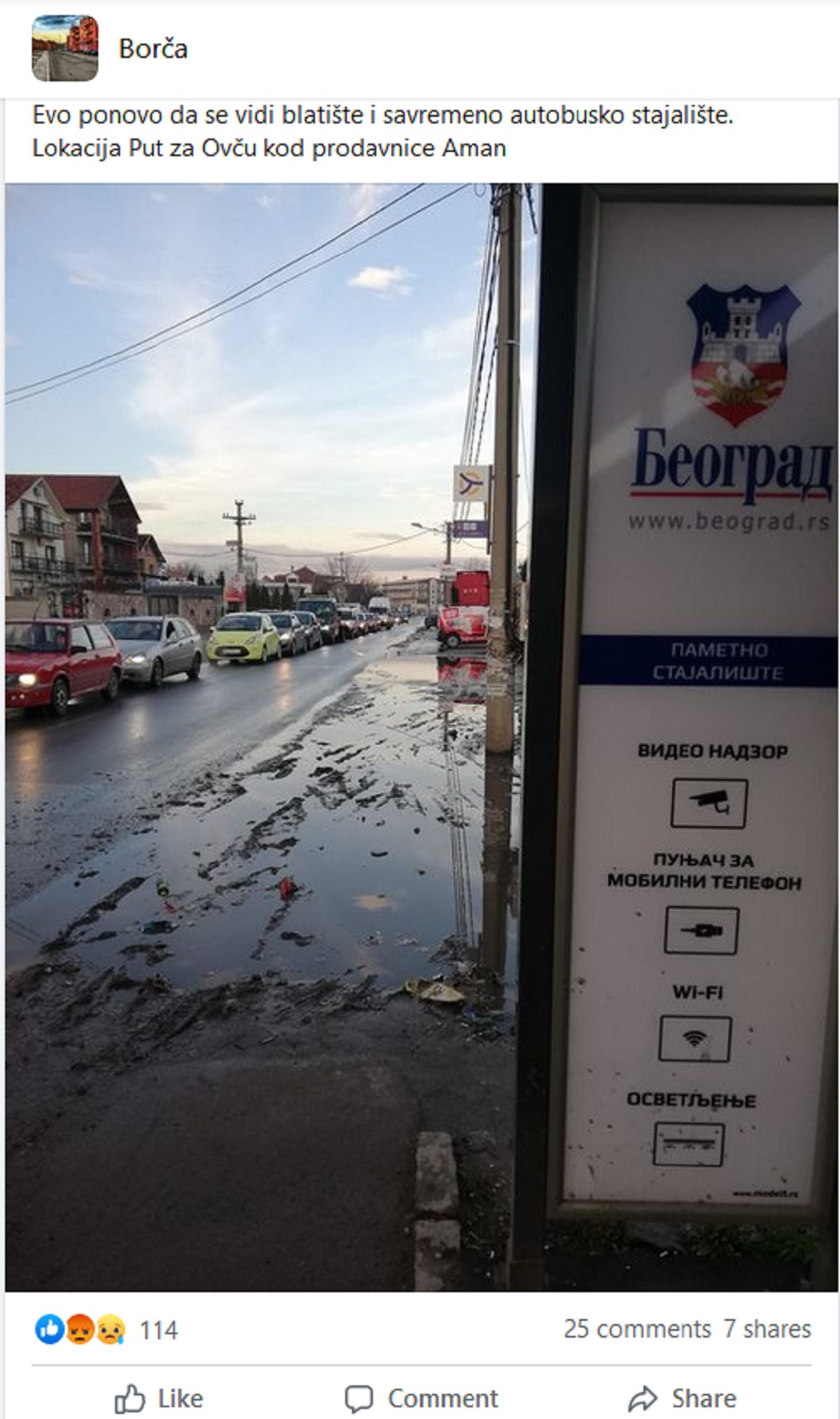 Žitelji Ovče, ali i okolnih naselja nemaju nikakvo drugo rešenje, sem da, kada su ovakvi uslovi, čekaju gradski prevoz na sledećoj stanici, jer će do betoniranog trotoara morati još da se načekaju.