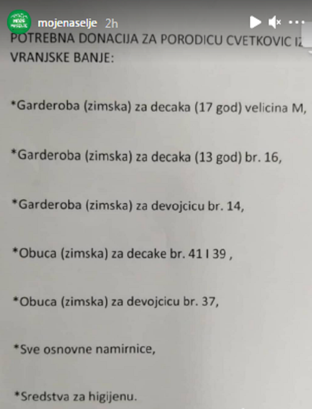 Takođe, objavili su i spisak stvari koje su potrebne ovoj porodici.