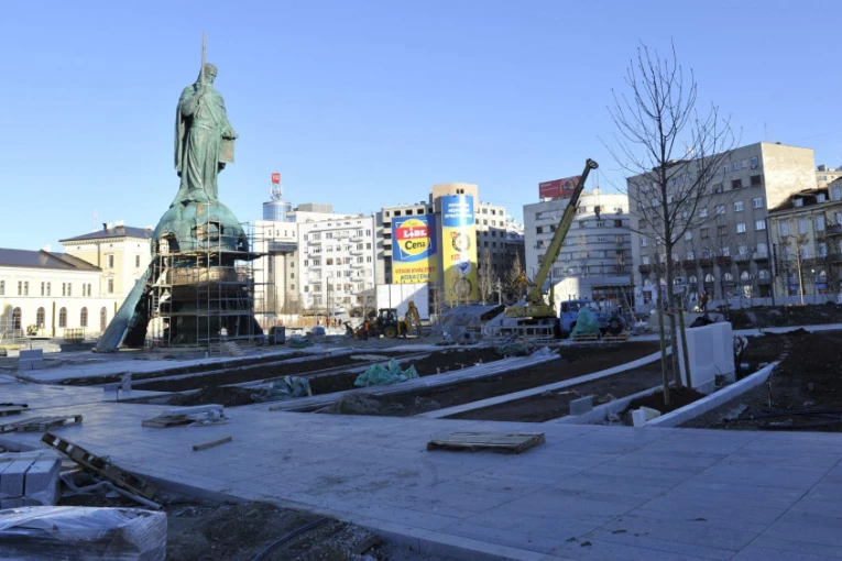 Naveo je da se oko spomenika Stefanu Nemanji trenutno vrši betoniranje kako bi tu počelo postavljanje kamenih kocki starih više od sto godina koje su, podsetio je, pronađene prilikom radova na uređenju prostora na uglu Balkanske ulice sa Ulicom Gavrila Principa.