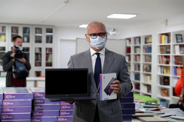 -Istovremeno delimo ukupno 6.952 laptopova za sve učitelje i nastavnike koji takođe dobijaju besplatan internet -rekao je on.