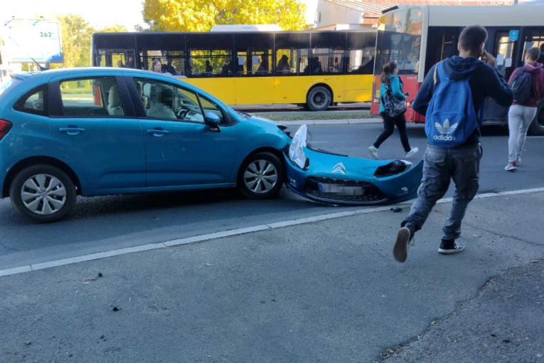 Sudar autobusa i automobila na Banovom brdu: "Sitroenu" otpao branik (FOTO)