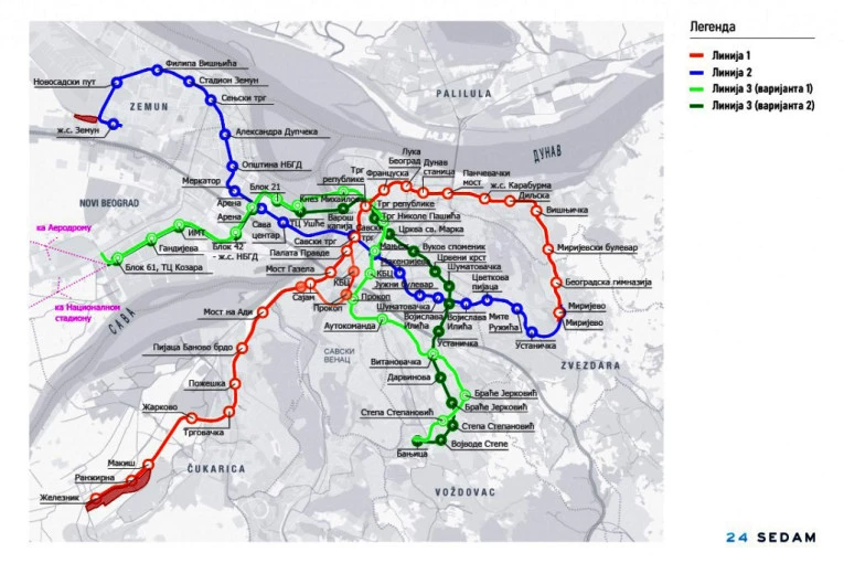 Naveo je da će na prvoj liniji biti četiri stanice za presedanje - Makiš, Sajam, Pančevački most i Karaburma, dok će drugoj to biti Makenzijeva i Železnička stanica u Zemunu.