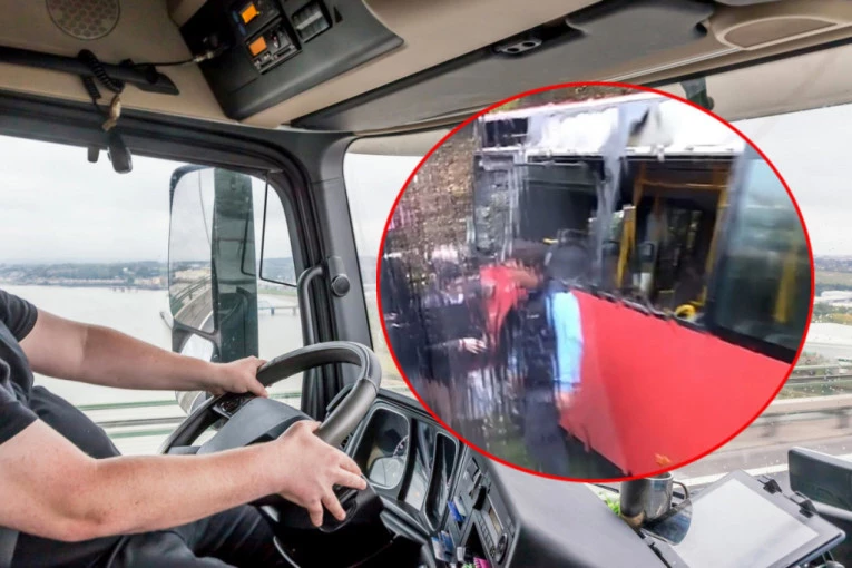 Teretno vozilo je, objasnili su, prikolicom udarilo u vozačevu stranu autobusa, koji je sleteo sa kolovoza u kanal.