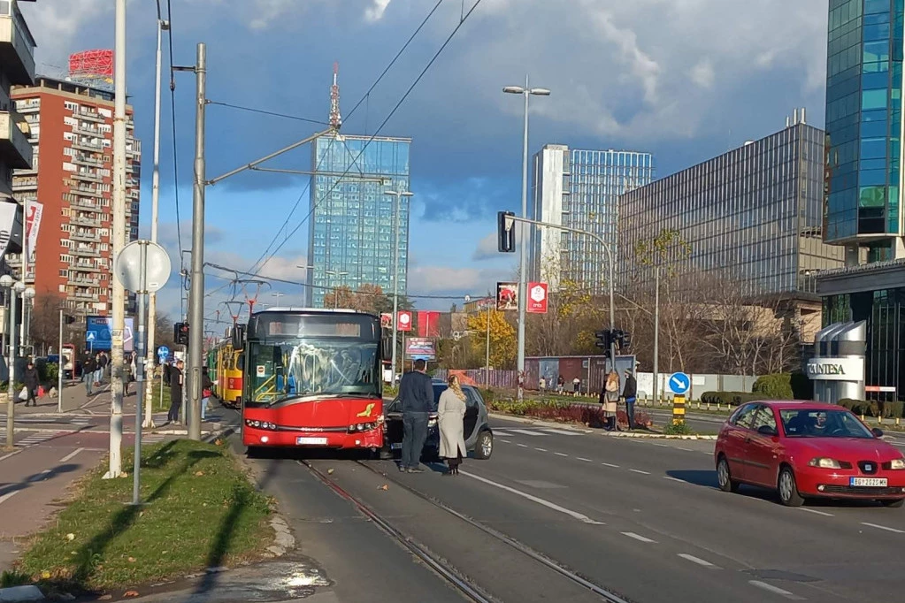 Autobus koji saobraća na liniji 95 i automobil marke "smart" sudarili su se danas oko 14 sati na Novom Beogradu, na uglu ulice Milentija Popovića i Bulevara Zorana Đinđića.