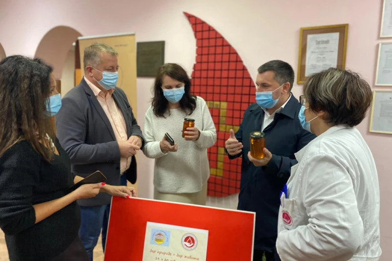 Dobrovoljnim davocima krvi na poklon teglica domaćeg meda