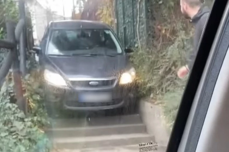 "Ja zarobljena, a on silazi!" Neverovatna scena na Senjaku - kolima niz stepenice (VIDEO)