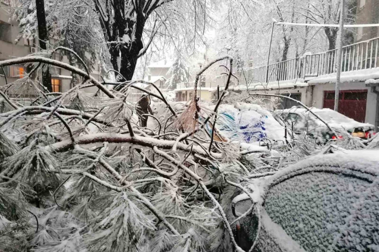 Beograd pred naletom mećave, sneg ne posustaje: Izlomljene grane zatrpale automobile! (FOTO)